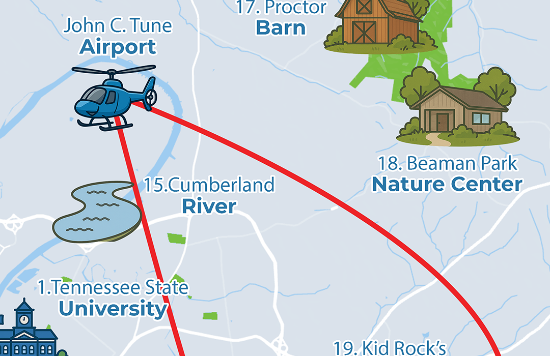 The Nashville 360 Helicopter Tour offers a complete aerial experience over Music City’s most iconic landmarks. Soar above downtown’s glittering skyline, the AT&T “Batman” Building, Nissan Stadium, Broadway’s lively strip, and the shimmering Cumberland River. You’ll circle over famous sights like the Country Music Hall of Fame, Bridgestone Arena, and the Parthenon in Centennial Park; all while taking in stunning panoramic views that showcase the true heart of Nashville from every angle.